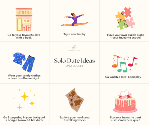 Of course, we have some Solo Date Ideas for you! We have put together some simple and budget-friendly options for you to choose from.